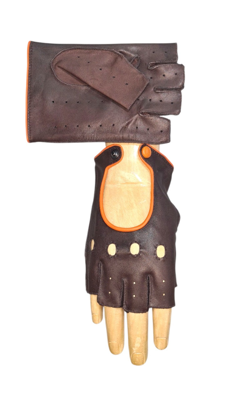 Guanti Driver in Pelle – Modello Sfoderato con Dettagli Arancioni