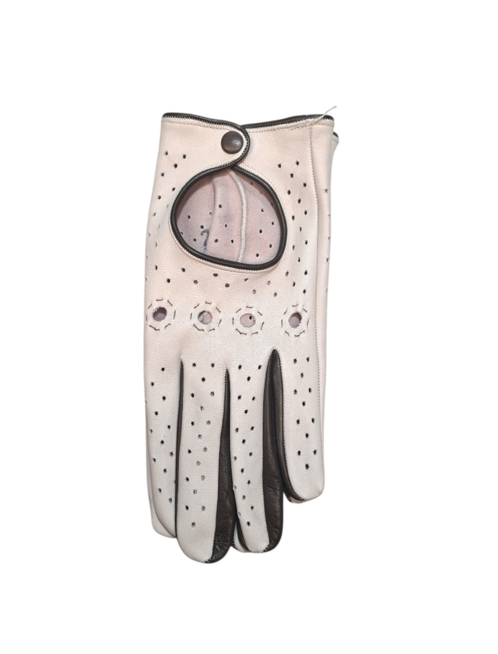 " Maria"- Guanti da donna guida in pelle – Bicolore, sfoderati, con bottoncino rivestito in pelle